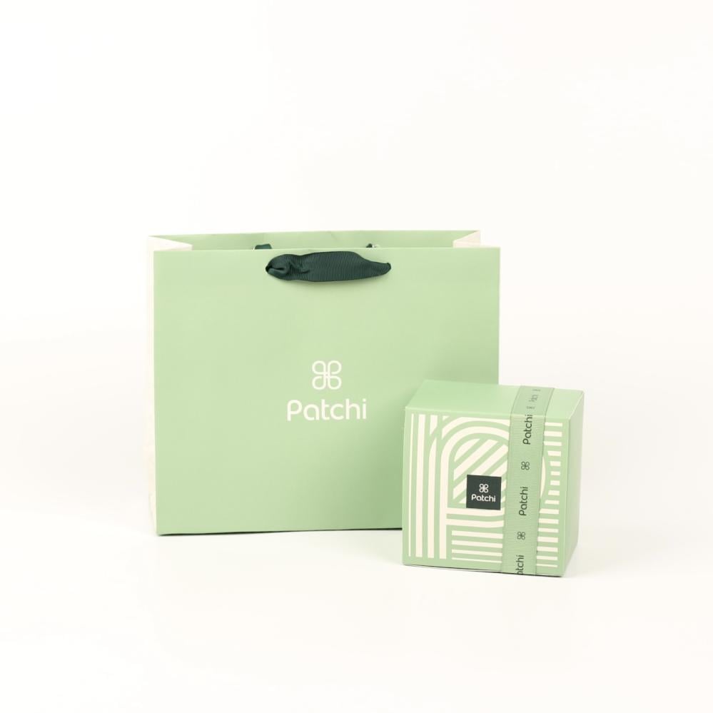 علبة باتشي بداخلها ربع كيلو من حبات الشوكلت المغلفة بحشوات منوعة.