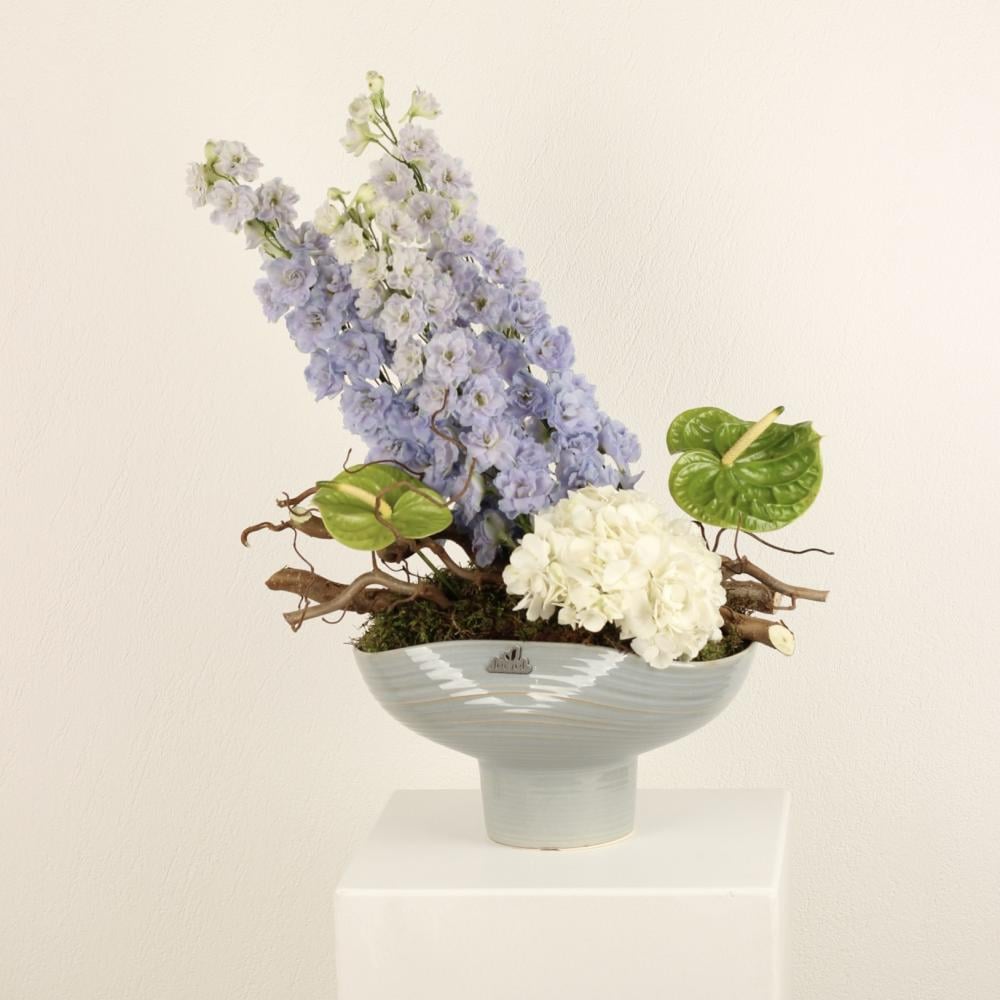 منسقة بزهور الدلفينيوم و الهيدرنجا